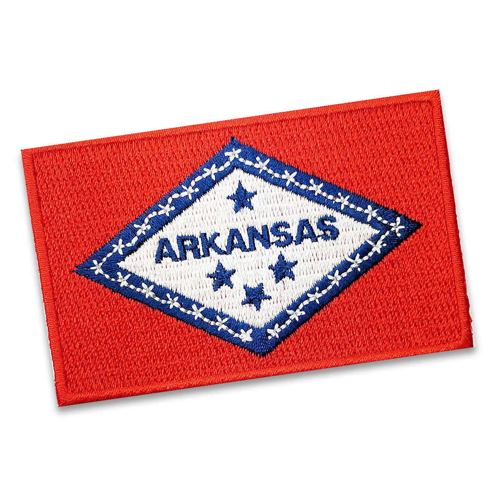 Arkansas Embroidered flag badge with heat seal backing