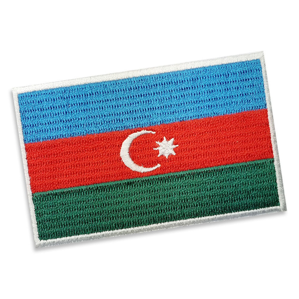 Azerbaijan Embroidered flag badge with heat seal backing BLUE PANTONE: PMS 313 C HEX (HTML): #0092BC; RGB: (0 146 188) CMYK: (100 0 11 2) WHITE HEX (HTML): #FFFFFF; RGB: (255,255,255) CMYK: (0 0 0 0) RED PANTONE: PMS 185 C HEX (HTML): #E4002B; RGB: (228 0 43) CMYK: (0 93 79 0) GREEN PANTONE: PMS 3405 C HEX (HTML): #00AF66; RGB: (0 175 102) CMYK: (88 0 68 0)