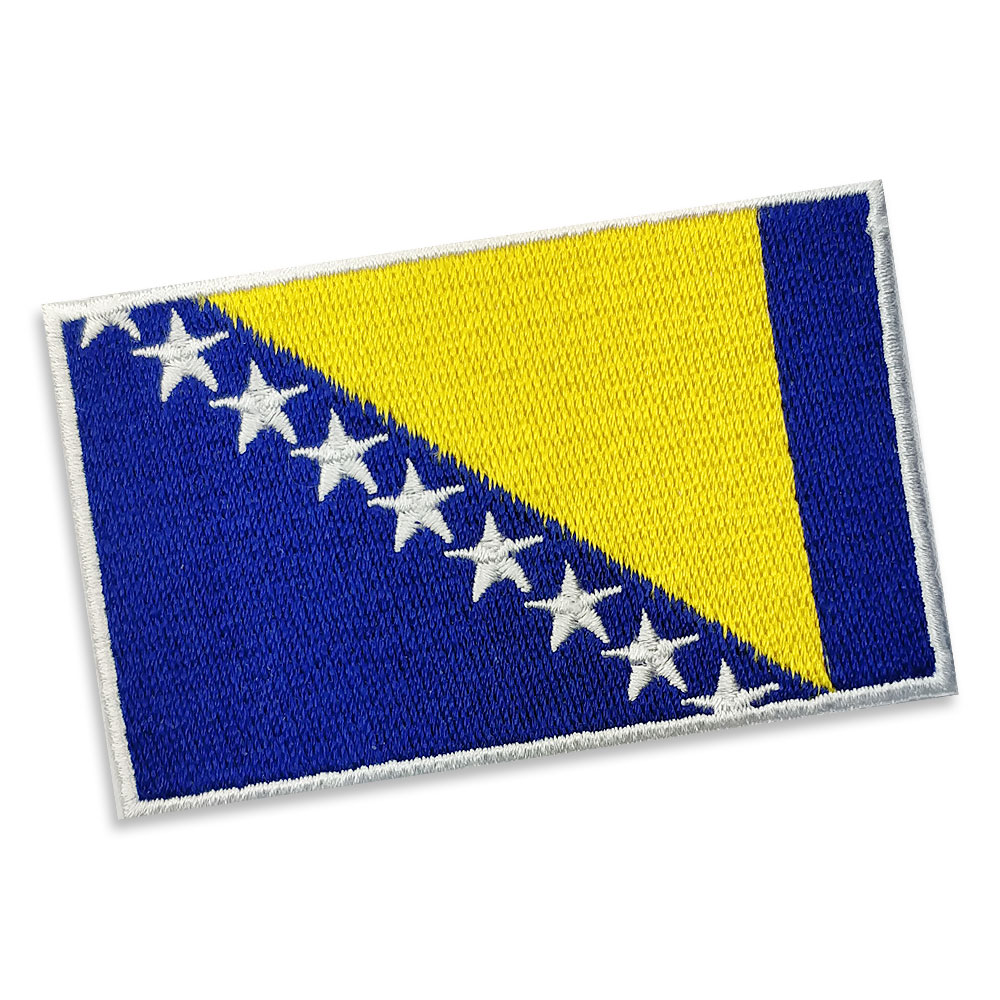 Bosnia and Herzegovina Embroidered flag badge with heat seal backing BLUE PANTONE: PMS 294 HEX (WEB): #002F6C RGB: (0 47 108) CMYK: (100 69 7 30) YELLOW PANTONE: PMS 116 HEX (WEB): #FFCD00; RGB: (255 205 0) CMYK: (0 14 100 0) WHITE HEX (WEB): #FFFFFF; RGB: (255 255 255) CMYK: (0 0 0 0)