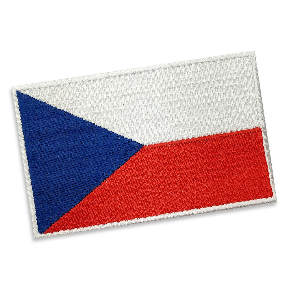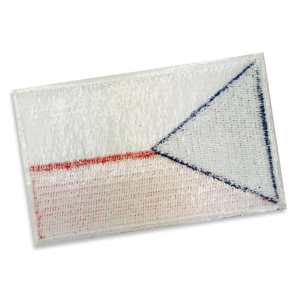 Czech Republic Embroidered flag badge with heat seal backing BLUE PANTONE: PMS 287 C HEX (HTML): #003087; RGB: (0,48,135) CMYK: (100,75,2,18) RED PANTONE: PMS 192 C HEX (HTML): #E40046; RGB: (228,0,70) CMYK: (0,94,64,0)