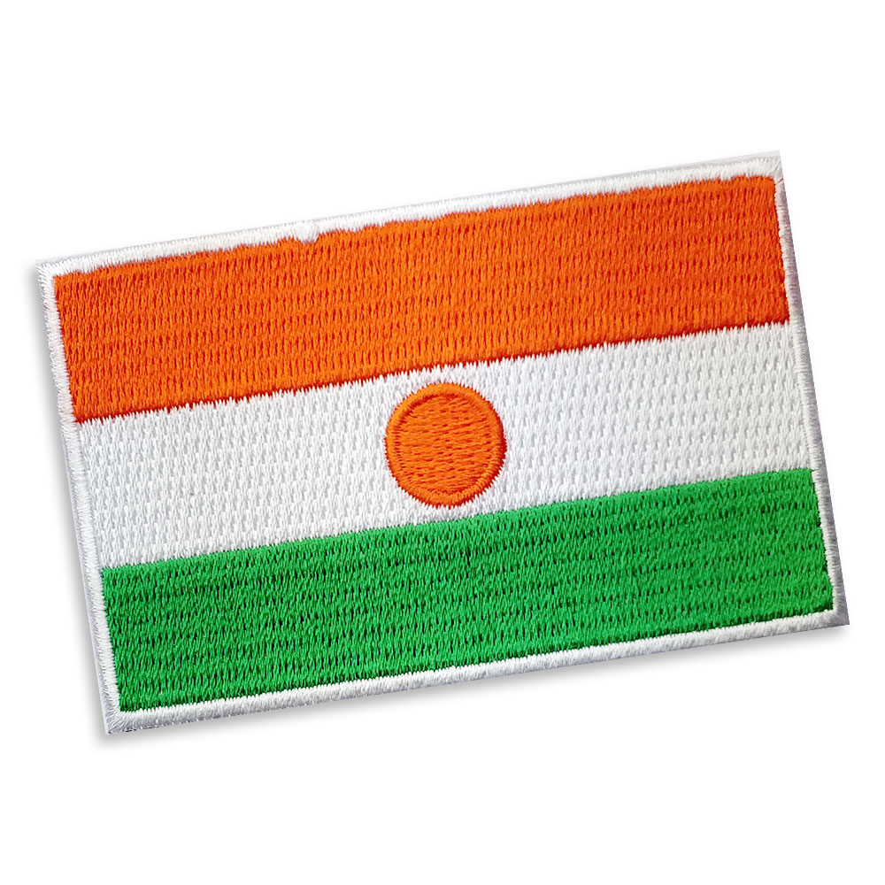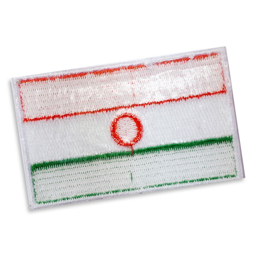 Niger Embroidered flag badge with heat seal backing YELLOW PANTONE: PMS 150 C HEX (HTML): #FFB25B; RGB: (255,178,91) CMYK: (0,41,78,0) WHITE PANTONE: PMS WHITE C HEX (HTML): #FFFFFF; RGB: (255,255,255) CMYK: (0,0,0,0) GREEN PANTONE: PMS 355 C HEX (HTML): #009639; RGB: (0,150,57) CMYK: (91,0,100,0)