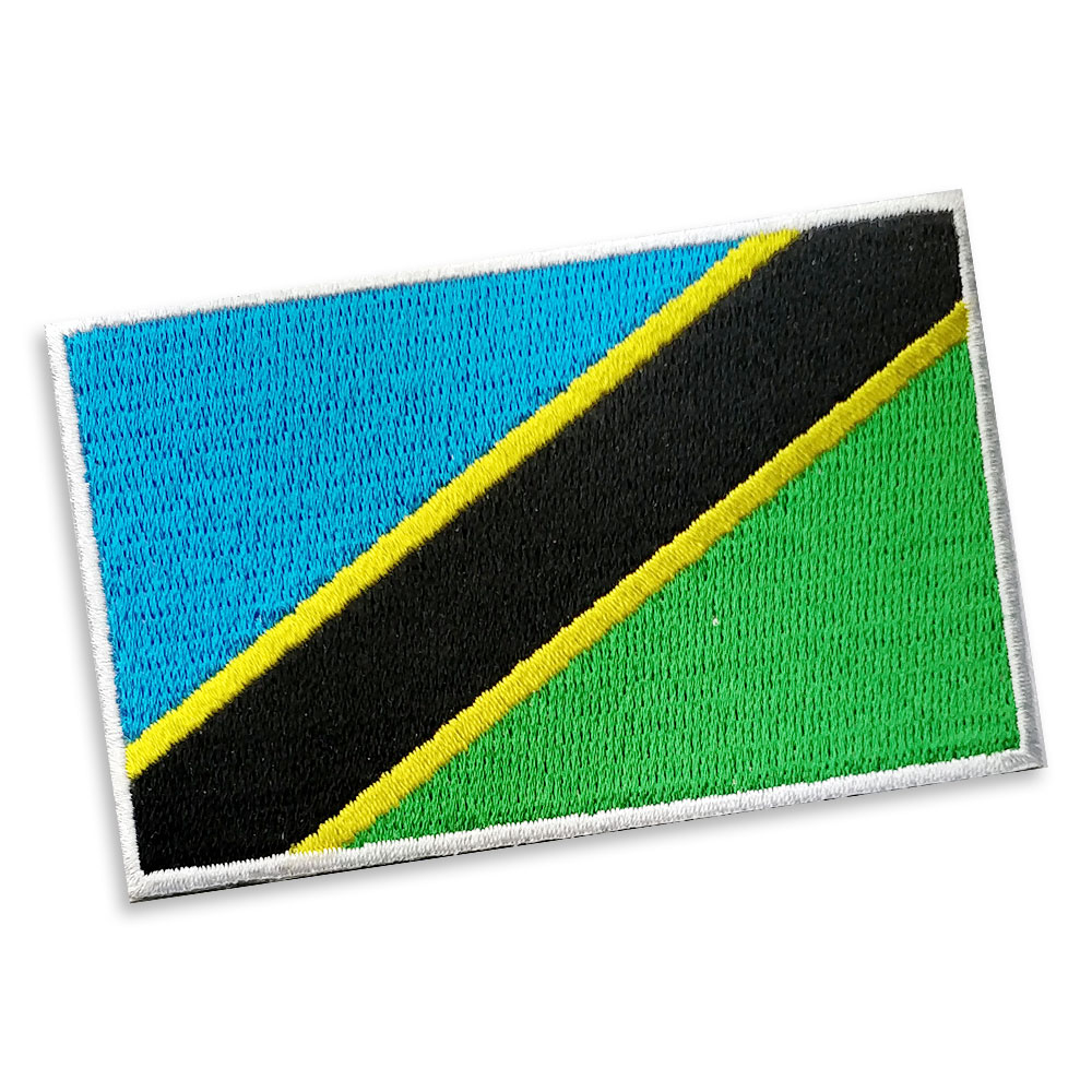 Tanzania Embroidered flag badge with heat seal backing GREEN PANTONE: PMS 361 C HEX (HTML): #43B02A; RGB: (67,176,42) CMYK: (77,0,100,0) YELLOW PANTONE: PMS 116 C HEX (HTML): #FFCD00; RGB: (255,205,0) CMYK: (0,14,100,0) BLUE PANTONE: PMS 299 C HEX (HTML): #00A3E0; RGB: (0,163,224) CMYK: (86,8,0,0)