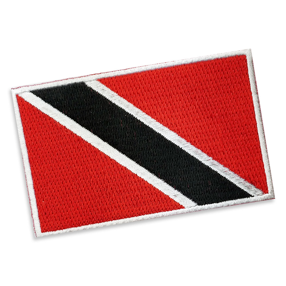 Trinidad and Tobago Embroidered flag badge with heat seal backing RED PANTONE: PMS 186 C HEX (HTML): #C8102E; RGB: (200,16,46) CMYK: (2,100,85,6) WHITE PANTONE: PMS WHITE C HEX (HTML): #FFFFFF; RGB: (255,255,255) CMYK: (0,0,0,0) BLACK PANTONE: PMS BLACK C HEX (HTML): #000000; RGB: (0,0,0) CMYK: (0,0,0,100)