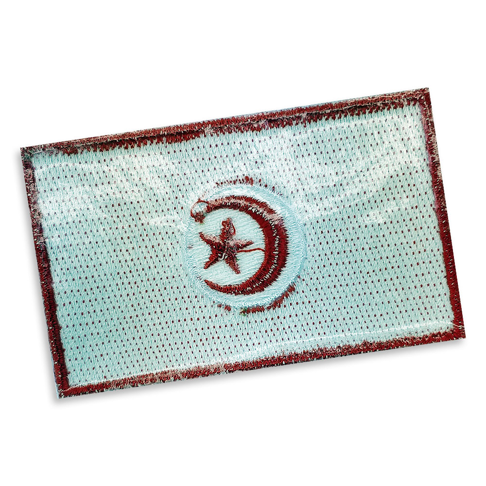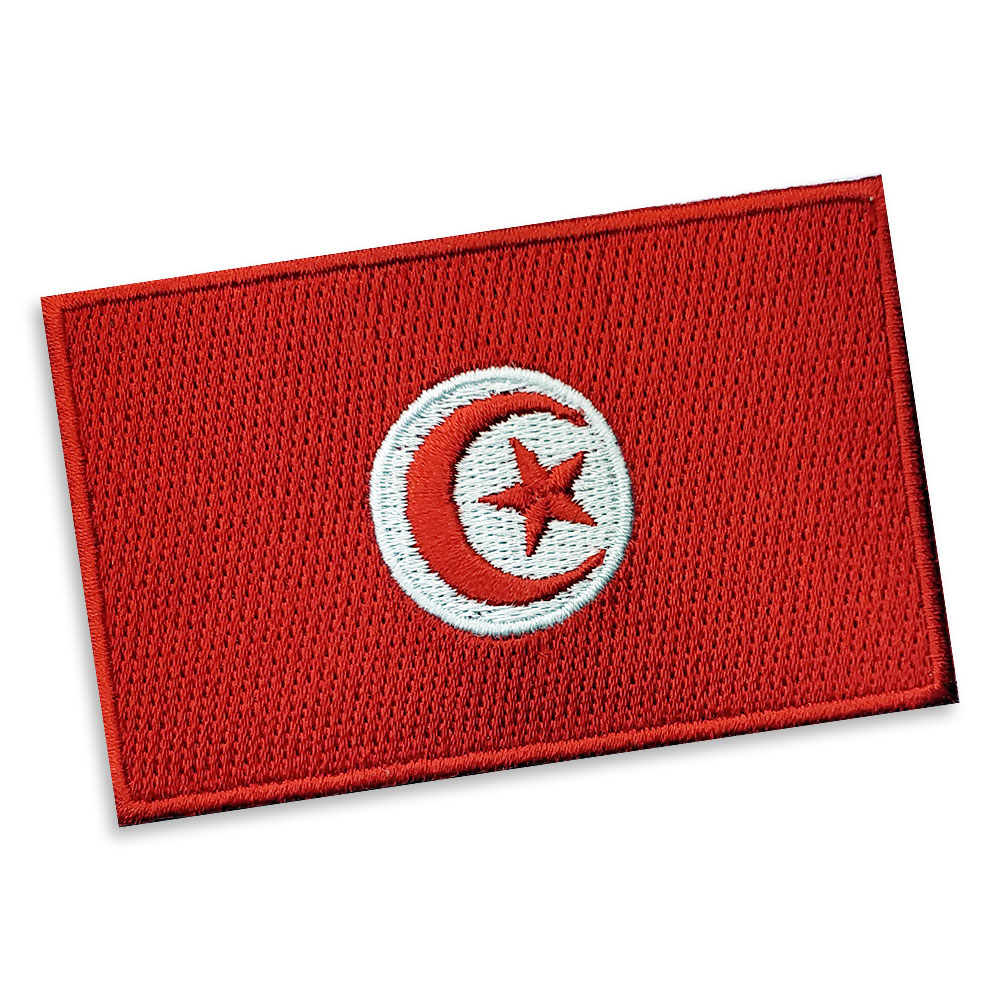 Tunisia Embroidered flag badge with heat seal backing RED PANTONE: PMS 186 C HEX (HTML): #C8102E; RGB: (200,16,46) CMYK: (2,100,85,6) WHITE PANTONE: PMS WHITE C HEX (HTML): #FFFFFF; RGB: (255,255,255) CMYK: (0,0,0,0)